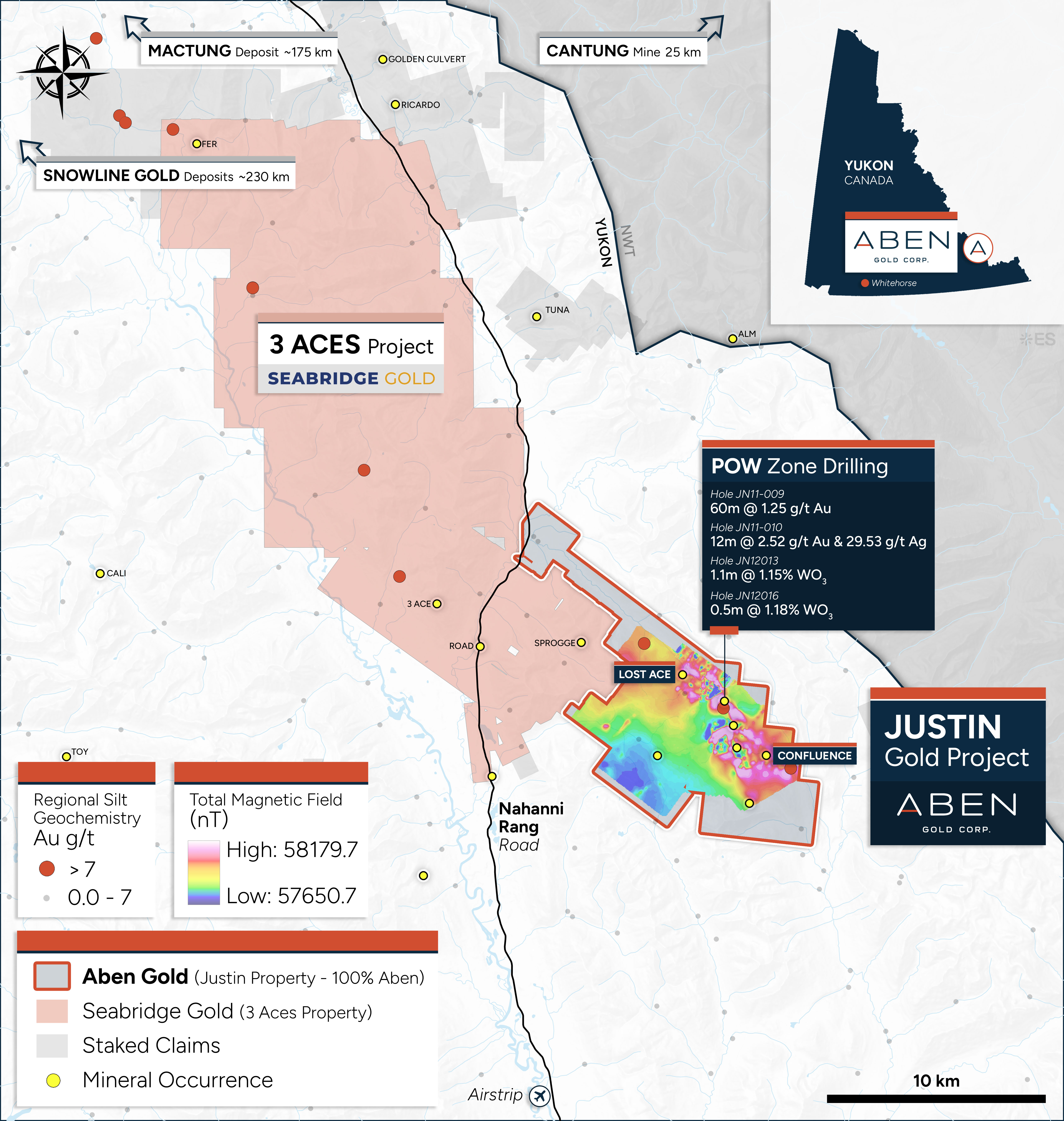 Riley Trimble, President and CEO of Aben Gold Corp., commented: “The 2014 tungsten re-assay data has been an important historical dataset that we are now thoroughly reviewing with modern eyes and current market context. Tungsten is a critical mineral with growing strategic importance, and the coincident gold-tungsten mineralization at the POW Zone presents a compelling opportunity. Our 2026 exploration program will be designed to test and expand both metals simultaneously through targeted drilling, sampling, and geophysical follow-up. This integrated approach aligns with our goal of unlocking the full value of the Justin Project for our shareholders.”